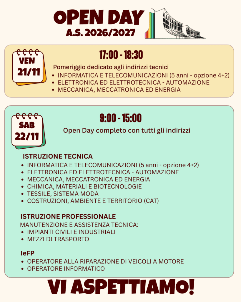 Vieni a scoprire la nostra scuola e a parlare con docenti e studenti